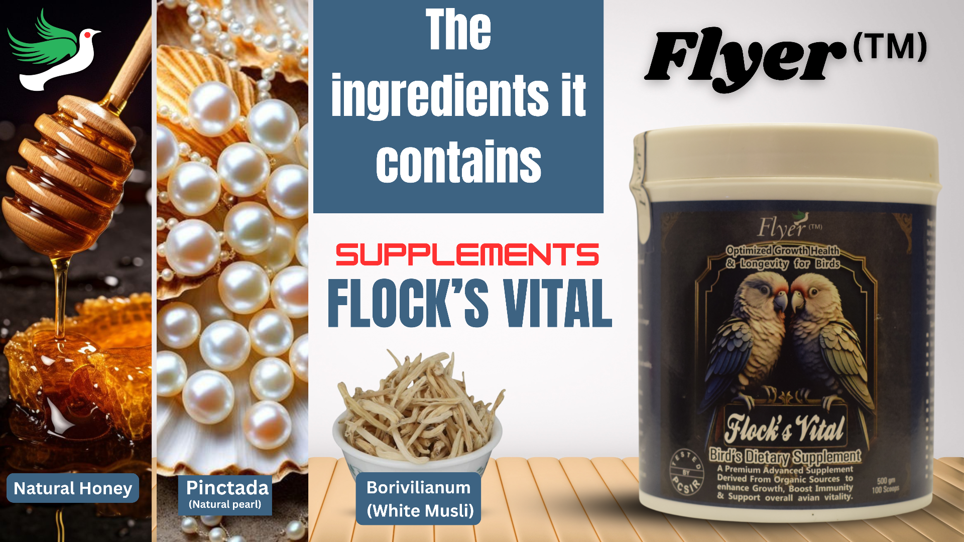 Flock's Vital offers a complete solution for your birds' health and development needs